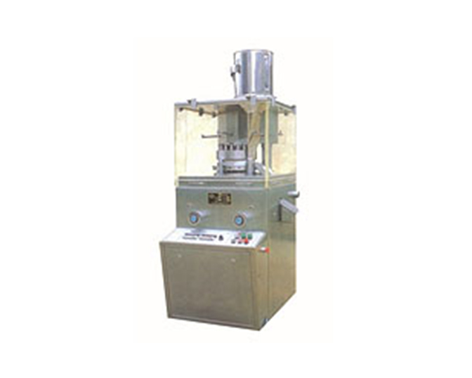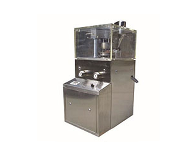 本機用以將各種顆粒狀原料壓制成圓片狀,還能壓制成各種幾何形狀的異形片。適合于小批量生產(chǎn)。壓片時轉(zhuǎn)盤速度、物料的充填深度,壓片厚度均可調(diào)節(jié)。機上的機械緩沖裝置可避免過載而引起的機件損壞。機體一側(cè)配有吸粉箱,通過吸咀可吸取機器運轉(zhuǎn)時產(chǎn)生的粉塵,避免粘結(jié)堵塞,并可回收原料重新使用。